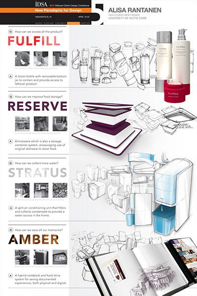 Alisa received her BFA in Industrial Design from Notre Dame University in May 2013. During her last semester, she represented Notre Dame’s design program at the IDSA Midwest District Conference and was named the Midwest Merit Award winner – earning recognition as one of the top five graduating industrial designers in the country. She received the actual award this past week at the IDSA International Conference here in Chicago.